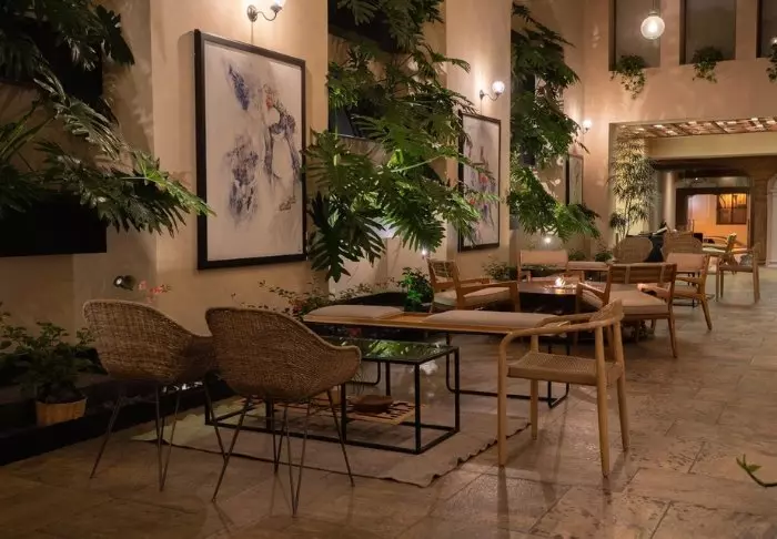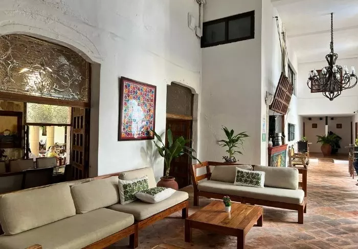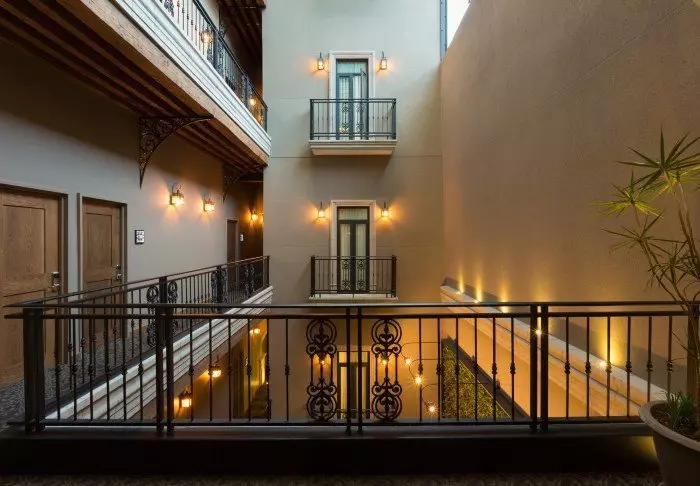 Hotellet er også en historisk kolonitidsbygning med mange flotte detaljer, som buede tak og fargerike fliser på gulvene. I midten av bygningen er det et hyggelig atrium.
