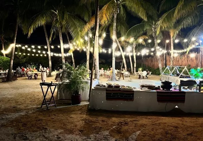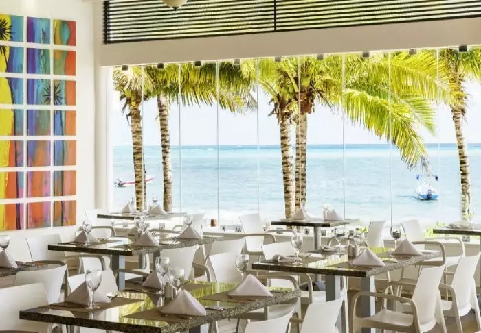 Restauranten ligger rett på stranden og her kan du spise smakfulle retter til lyden av det karibiske havets bølger.