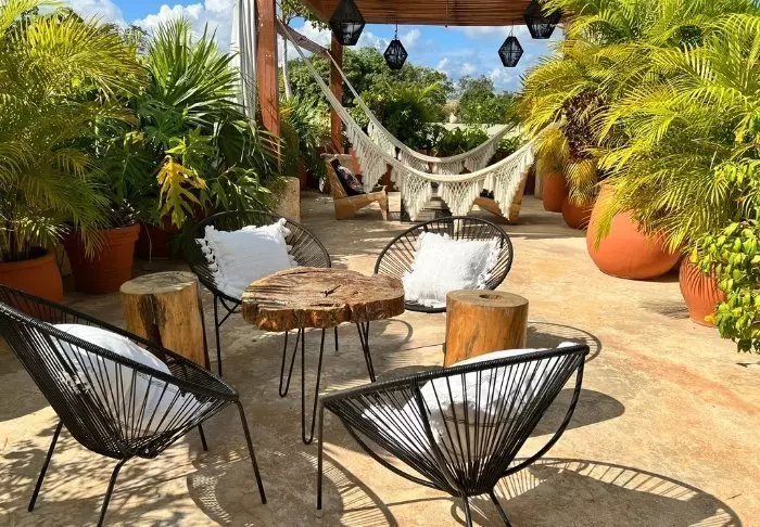 Hotellet har 33 rom, som alle er innredet i lyse farger i rustikk mexicansk stil med tremøbler og dekorative detaljer som gir stedet en avslappet og hjemmekoselig atmosfære.