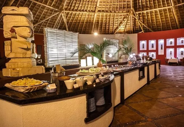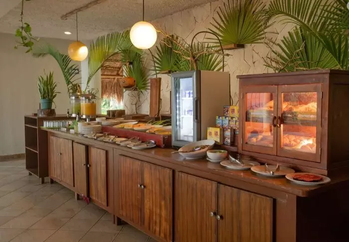 Restauranten tilbyr et bredt utvalg av kulinariske alternativer, fra en stor frokostbuffet med fersk frukt og ferskpresset juice til lunsj- og middagsbuffeter, som inkluderer både lokale meksikanske og internasjonale retter. Oppholdet ditt inkluderer frokost, men det er mulig å kjøpe en pakke med alt inkludert, slik at alle måltider, snacks og lokale drikkevarer er inkludert under hele oppholdet.