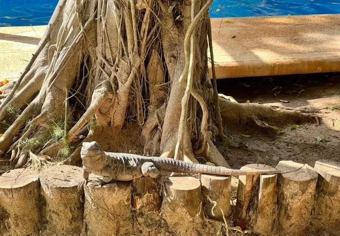 Rommene er spredt ut i den frodige hagen, og de mange trærne gir både nydelig skygge fra solen og bidrar til en ekstra naturopplevelse, siden vakre eksotiske fugler kommer på besøk. Du kan også være heldig nok til å få øye på en lat øgle eller iguana som kryper ned fra et tre.