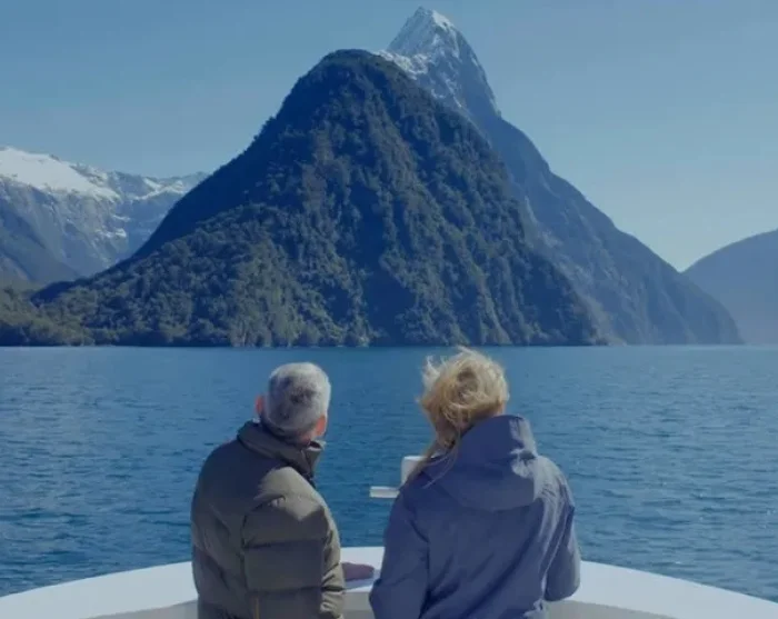 Dagen starter tidlig, og fra Queenstown kjører du langs bredden av vakre Lake Wakatipu og fortsetter inn i det dramatiske landskapet ved Devil’s Staircase. Ruten tar deg gjennom den fredelige byen Te Anau og videre inn i Fiordland nasjonalpark, hvor landskapet endrer karakter. Her venter brede isbredaler som Eglinton Valley, de speilblanke Mirror Lakes, dype elvedaler som Hollyford River og tett skog. Underveis blir det mange muligheter til å stoppe for å ta bilder av de flotte utsiktene.