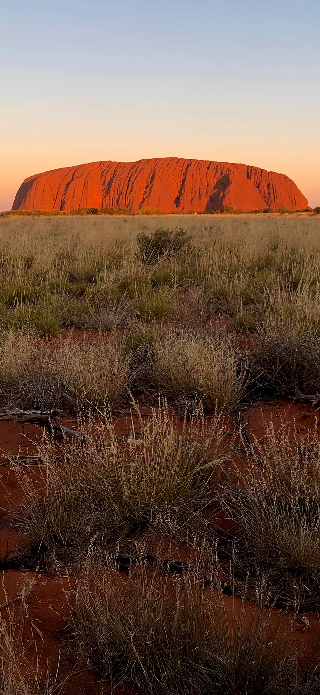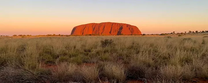 Senere på dagen venter en solnedgangstur over Uluru. Det er en magisk opplevelse å se hvordan det enorme fjellet sakte skifter farge fra rustrødt til glødende oransje, før det til slutt står igjen som en grå silhuett i det svinnende lyset.