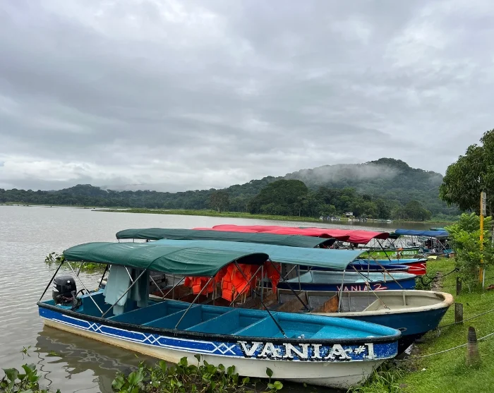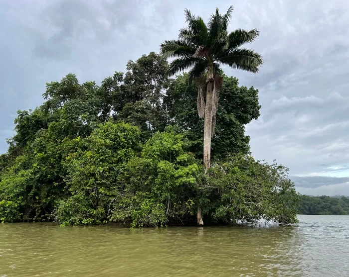 Fra havnen i Gamboa går du om bord i en liten motorbåt, og snart glir du ut på den store Gatún-sjøen, som er en sentral del av Panamakanalen. Før du når et roligere område, seiler du gjennom en del av kanalen der enorme lasteskip også passerer. Her får du oppleve en spennende kontrast mellom travel skipstrafikk på en av verdens viktigste handelsruter og den omkringliggende frodige regnskogen med sitt rike plante- og dyreliv.