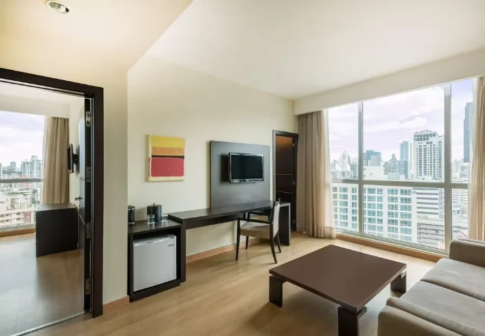 Hotellet har 92 lyse og moderne rom, innredet i en enkel og minimalistisk stil. Alle rom har aircondition, Wi-Fi, TV, minibar samt te- og kaffefasiliteter. Fra de store vinduene på rommene kan du observere bylivet som yrer nedenfor.