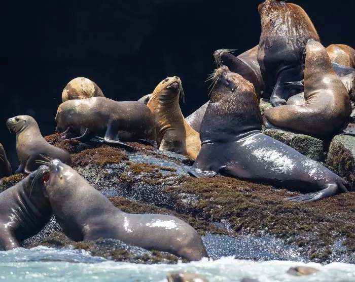 Når båten nærmer seg Palominoøyene, kan du trolig høre sjøløvene før du ser dem. Gled deg til synet av en stor koloni av lekne sjøløver som svømmer, hopper og dykker i vannet på disse steinøyene.