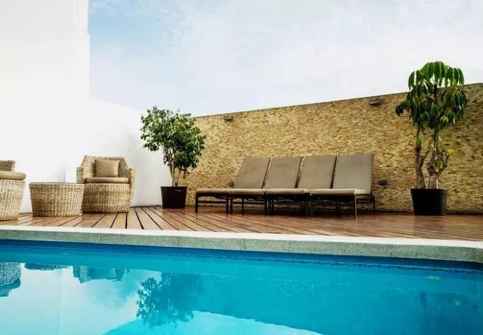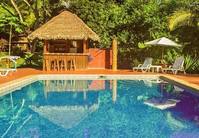 Hvis du trenger en forfriskende dukkert etter dagens spennende utflukter, er det et lite svømmebasseng i den frodige hagen. Her er det også en pool-bar der du kan kjøpe kalde drikkevarer og leskende drinker.