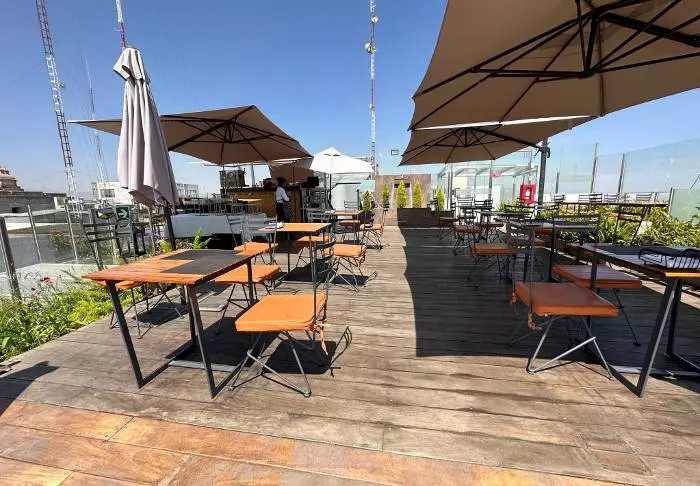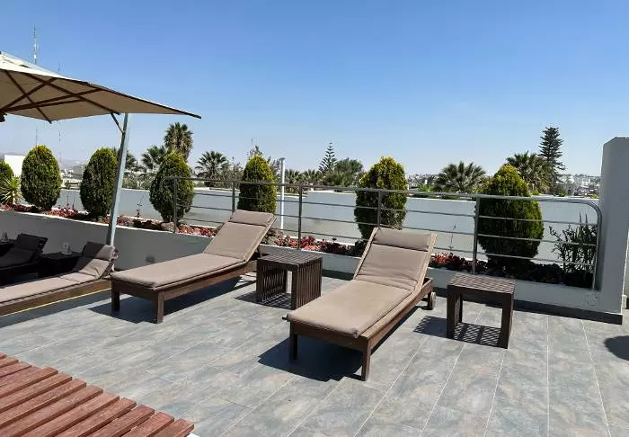 På takterrassen finner du bassenget, der du kan ta en forfriskende dukkert før du strekker deg ut på en solseng og slukker tørsten med et friskt glass ferskpresset juice. Ta inn utsikten over byen og de fantastiske vulkanene, som ruver i horisonten og av og til sender opp en liten røyksky.