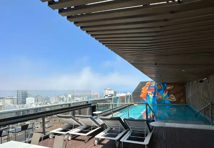Når dagen nærmer seg slutten, kan du nyte utsikten med en Pisco Sour på hotellets takbar, mens solnedgangen langsomt maler himmelen i vakre nyanser.