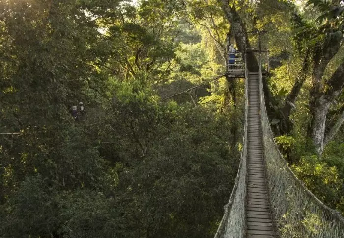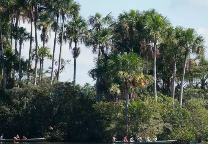 Dag 2: Kanotur på Sandovalsjøen i Tampopata-reservatet på utkikk etter jungelens eksotiske dyr og fugler. Om ettermiddagen vandring i tretoppene på lodgens egen “canopy walk”. Vandring i regnskogen i mørket med en guide.