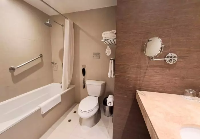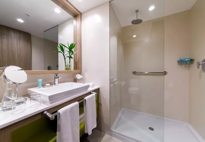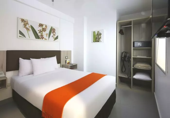 Rommene er moderne og pent innredet med alt du trenger: en god seng å sove i, TV, Wi-Fi, aircondition, minibar, elektrisk kjele til kaffe og te, safe og eget toalett/bad. Og du kan ta det helt rolig, for vinduene er lydisolerte, så du kan få en god natts søvn selv om du befinner deg på flyplassen.