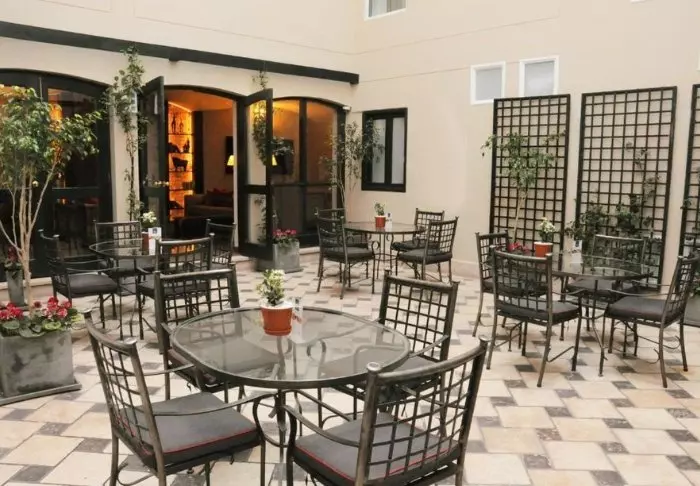 I denne vakkert bevarte kolonibygningen finner du syv dekorative gårdsplasser, hver dedikert til forskjellige formål. For eksempel er det en for utendørs servering, som tilhører restauranten, en annen for trening/yoga, slik at du kan holde deg aktiv mens du er på ferie, og en tredje som fungerer som et loungeområde for å slappe av og sosialisere.