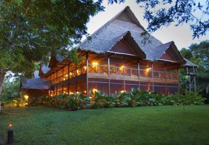 Lodgen har en unik beliggenhet mellom Tambopata National Park Reserve og Madre de Dios-elven og er bygget på et 819 hektar stort område, der det før var en kakao- og gummiplantasje. Lodgen ligger ca. 8 kilometer oppover elven Madre de Dios, fra Puerto Maldonado.