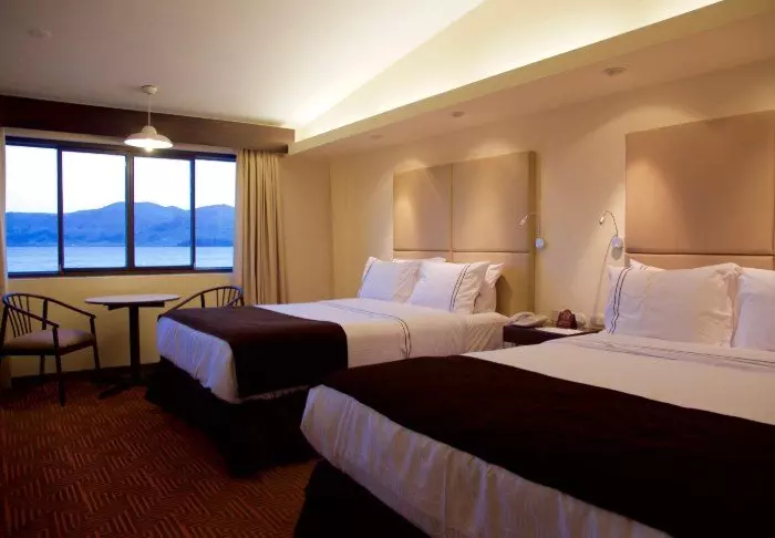 Hotellet har 62 rom, som alle har TV, klimaanlegg, telefon, Wi-Fi, safe og bad med hårtørker. Fra rommene med lake view har du flott panoramautsikt over sjøen som er omgitt av fjell. Helt magisk!
