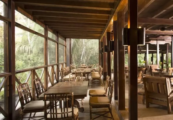 I andre etasje er det et lounge-område der du kan slappe av i en sofa med en bok eller utveksle erfaringer med andre reisende. Du kan også sitte her oppe og drikke en leskende cocktail mens solen går ned og jungelens nattaktive dyr og insekter våkner til liv. Du vil bli overrasket over hvor mye “naturstøy” dyr og insekter faktisk lager her ute.