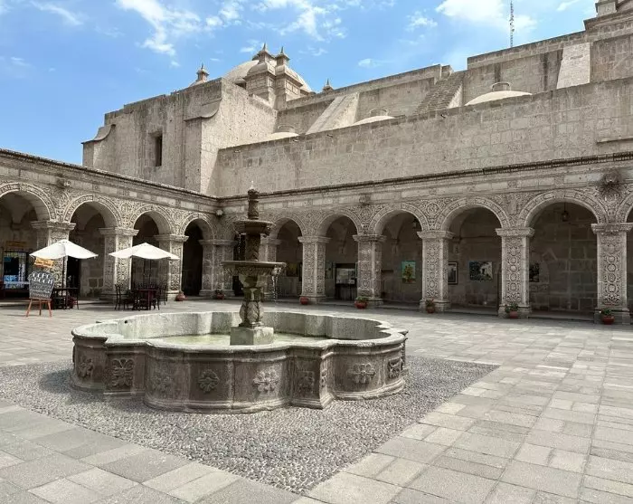 Deretter venter Arequipas største attraksjon, Santa Catalina-klosteret, der det en gang bodde mer enn 400 nonner. Santa Catalina ble grunnlagt i 1580 av den rike enken Maria de Guzmán. Klosteret var primært for overklassen, og i kolonitiden var det vanlig at familiens nest eldste barn skulle tjene kirken. Jentene ble brakt til klosteret allerede i tre-årsalderen og kom aldri utenfor murene igjen.