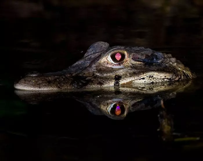Senere på kvelden skal du bli med på en guidet båttur nedover elven for å få øye på kaimanene som lever ved elvebredden. Når kaimanene blir blendet av lyset fra guidens lommelykt, lyser øynene deres rødt, og det gjør det lettere for deg å få øye på dem.
