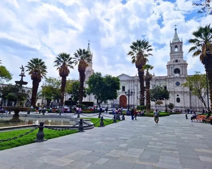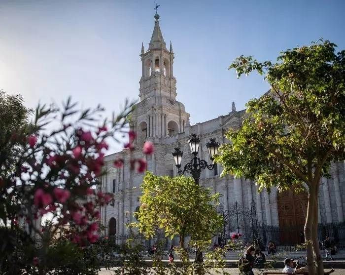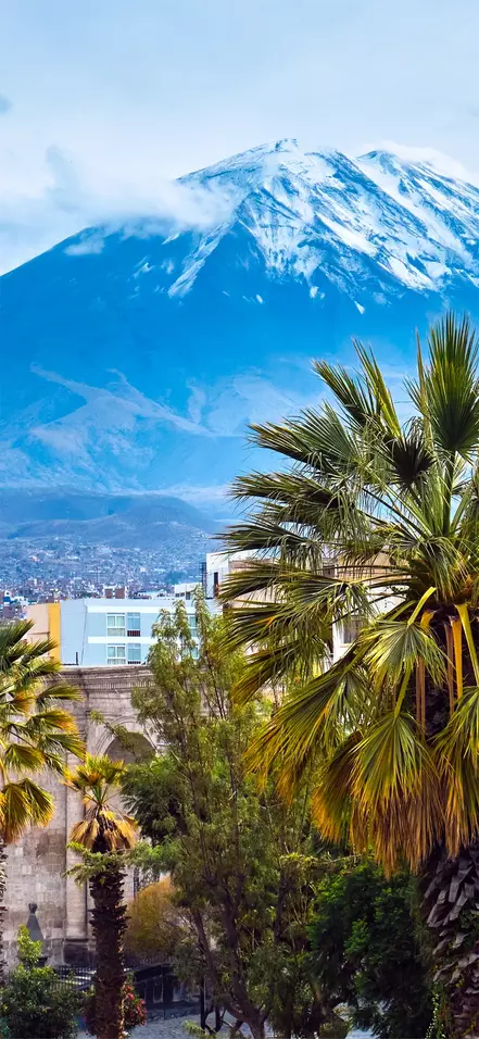 Arequipa ligger vakkert til i Andesfjellene, i nesten 2 400 meters høyde, med vulkanene Misti (5 822 m), Chachani (6 057 m) og Pichu-Pichu (5 669 m) som flott kulisse. Byen kalles også “Den hvite by” fordi de fleste husene er bygd av hvit vulkanstein.