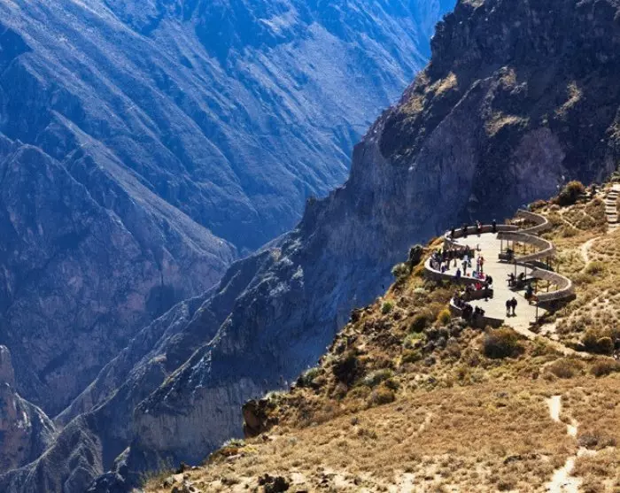 Tidlig om morgenen går turen til Colca Canyon, en 3 400 meter dyp kløft og faktisk en av de dypeste kløftene i verden. Til sammenligning er den omtrent dobbelt så dyp som Grand Canyon i USA.
