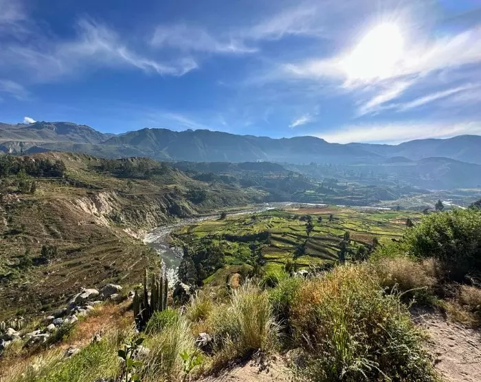 De neste par dagene får du virkelig oppleve de mektige Andesfjellene. Du krysser den spektakulære høysletten Altiplano. Den er kjent for sitt tørre, golde landskap med store åpne vidder der du kan få øye på beitende lamaer og alpakkaer. Flere steder kjører du i over 4 000 meters høyde. Det høyeste passet og utsiktspunktet på ruten heter Mirador de los volcanes, og herfra har du i klart vær en fantastisk utsikt til de omliggende vulkanene. Utsiktspunktet ligger i ca. 4 900 meters høvde, og du vil nok raskt merke at den tynne luften i denne høyden gjør det mer anstrengende å puste. Derfor blir det også bare et raskt fotostopp før du fortsetter ned mot byen Chivay, som fungerer som inngang til Colca Canyon.