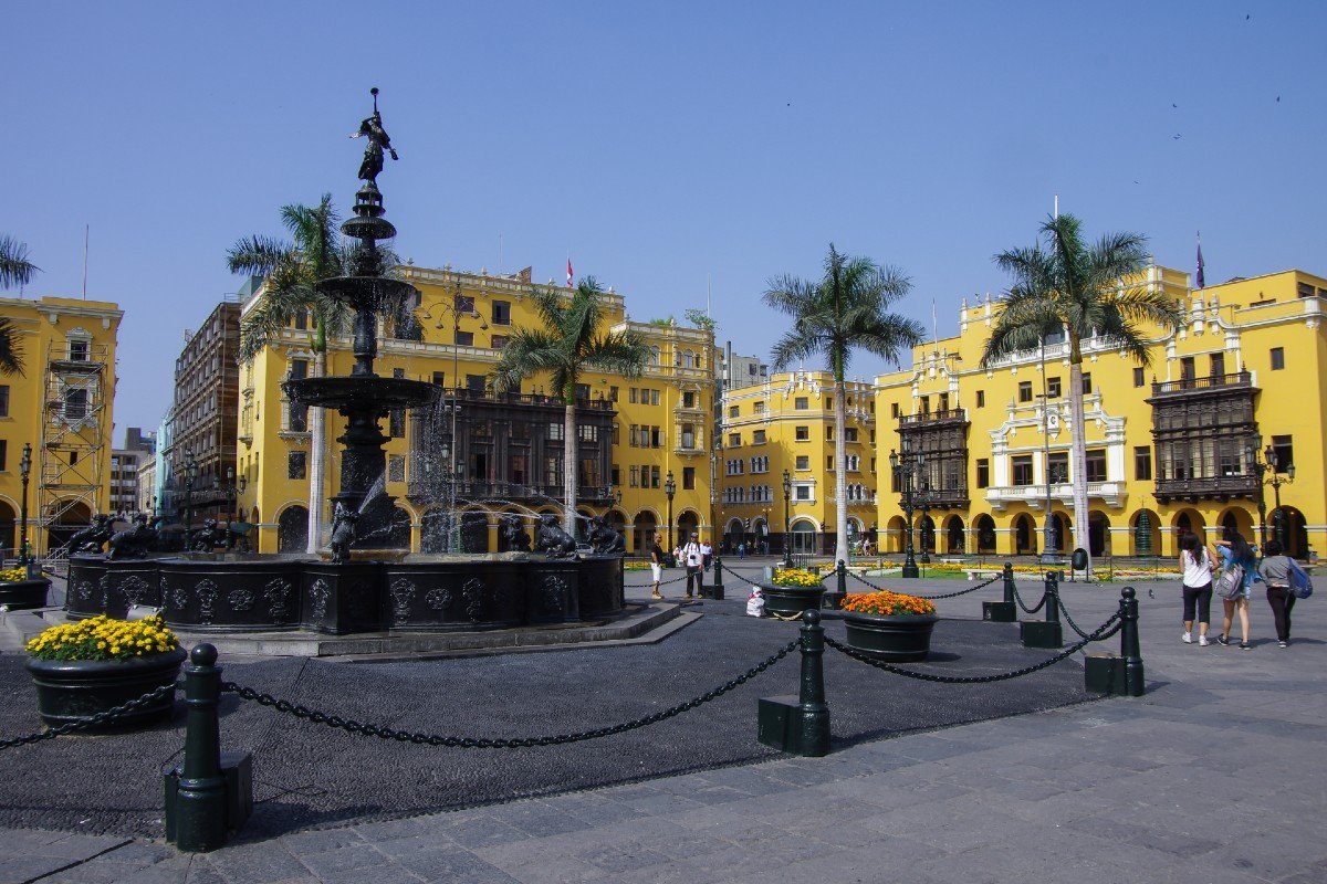 Du blir hentet på hotellet, og turen går først går til byens livlige sentrale plass, Plaza Mayor, som er smykket med blomster i røde, hvite og gule farger, høye palmer og et springvann med byens skytsengel på toppen. Den historiske plassen er omgitt av flotte kolonitidsbygninger, blant annet Regjeringpalasset, Erkebispens palass og Limas imponerende katedral, der Pizarros jordiske rester hviler.