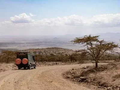 På safari kjører du i en landcruiser med firehjulstrekk og plass til opptil sju personer. I alle bilene kan man åpne taket.