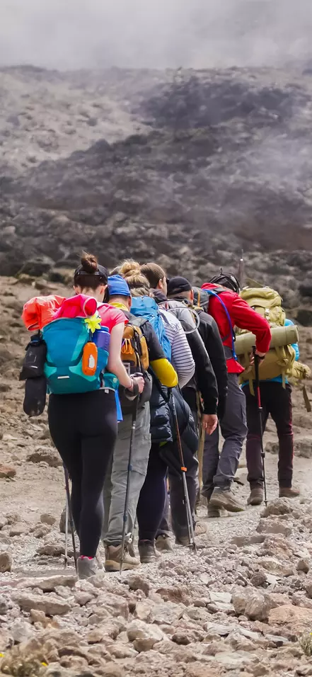 Den faktiske oppstigningen av Kilimanjaro er faktisk trekking snarere enn ekte fjellklatring. Det betyr at bestigningen ikke innebærer å ta seg opp bratte fjell, men heller å gå på stier og over steinformasjoner.