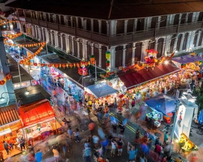 Turen fortsetter gjennom gatene i Chinatown, forbi boder som selger eksotisk frukt – inkludert den beryktede durianen, som du får sjansen til å smake på. Du skal også forbi massevis av matboder, der du kan meske deg på lokalbefolkningens favoritt, stekt gulrotkake, eller nudelretten char keow teow.