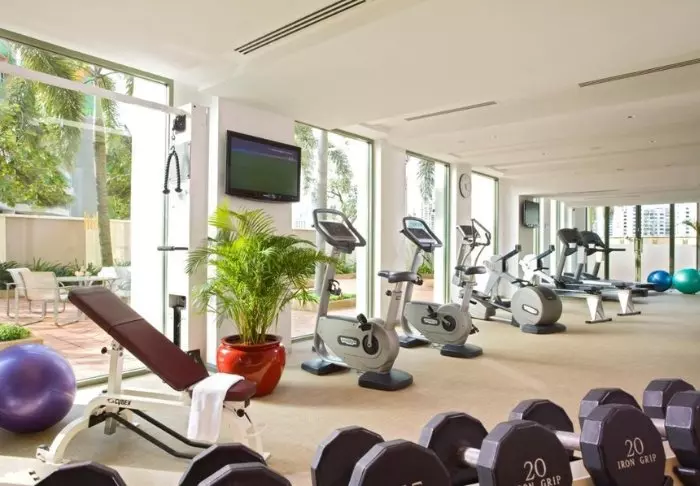 Hotellet har også eget treningsrom – Sky Gym, der du kan trene i en av de øverste etasjene med utsikt over hele byen.