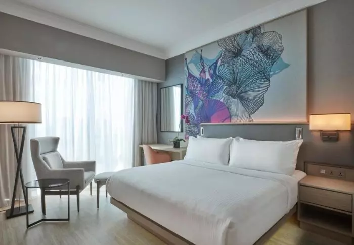 Hvis du er litt trøtt og trenger en lur, men likevel vil beundre utsikten over byen, er det null problem! Rommene ligger nemlig i de høyere etasjene, så her kan du trekke fra gardinene og våkne opp til byutsikten. Alle rom har aircondition, WI-FI, TV, safe, strykejern og -brett, minibar samt gratis te- og kaffefasiliteter. På badet finner du regndusj, toalettartikler og hårtørker.