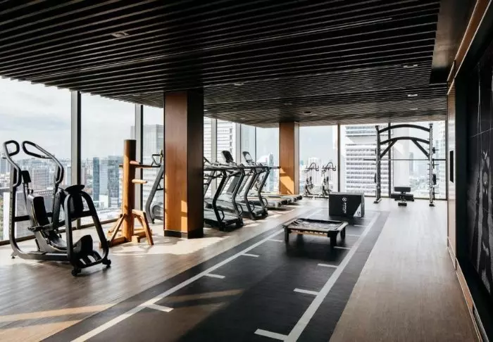 Hotellet har også eget treningsrom – Sky Gym, der du kan trene i en av de øverste etasjene med utsikt over hele byen.