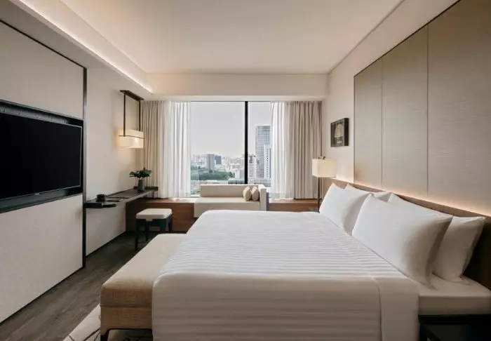 Rommene er moderne innredet i lyse og naturlige fargetoner, og alle rom har aircondition, WI-FI, TV, safe, strykejern- og brett, minibar og elektrisk kjele til te og kaffe. På badet finner du toalettartikler og hårtørker.