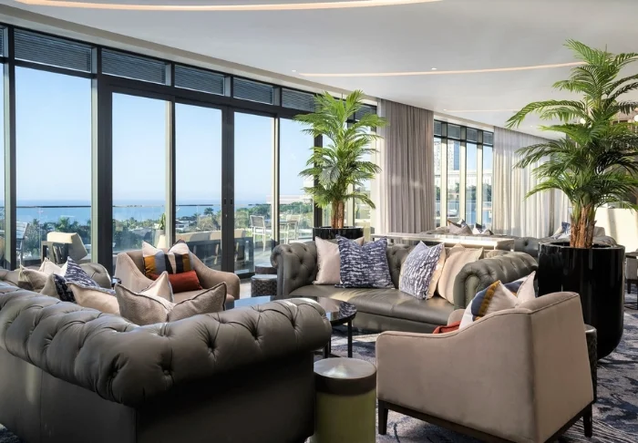 Hotellet har 173 rom, alle med store vinduer fra gulv til tak og utsikt til Det indiske hav. Rommene er moderne innredet i lyse og vennlige farger, med badet som en integrert del av selve rommet. Det er gratis Wi-Fi på alle rom, samt kjøleskap, sikkerhetsboks og te- og kaffefasiliteter.