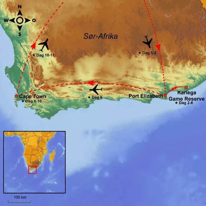Slipp malariapillene på Eastern Cape og få en ”all inclusive” safariopplevelse, bushwalk og besøk i en lokal landsby. Avslutt reisen med storbyferie i vakre Cape Town.