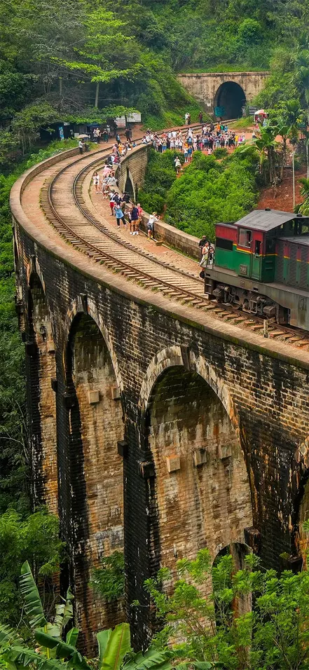 På vei dit går dere langs små stier omgitt av bananpalmer og tebusker, og kanskje hilser dere på barn som lever livet sitt blant de mange teplantasjene i området. Helt i enden venter den ni-buede jernbanebroen, som med sine nesten 30 meters høyde står som et arkitektonisk mesterverk midt i det frodige landskapet.