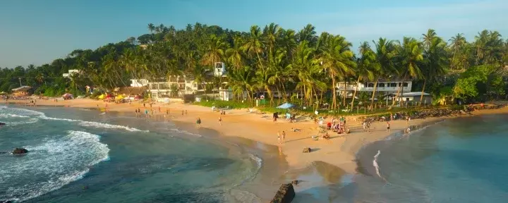 Mirissa er forholdsvis rolig og består av tre små viker med svaiende kokospalmer som strekker seg inn over de vakre, nesten paradisaktige strendene. Selv om dette er en av Sri Lankas mest populære badebyer, råder det fortsatt en avslappet og behagelig atmosfære her, hvor det er lett å finne roen.