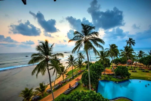 Om kvelden kan du spasere langs stranden og kanskje oppleve solnedgangens ildrøde farger, som sammen med batikkseilene og bølgene skaper en stemningsfull avslutning på din første dag på Sri Lanka.