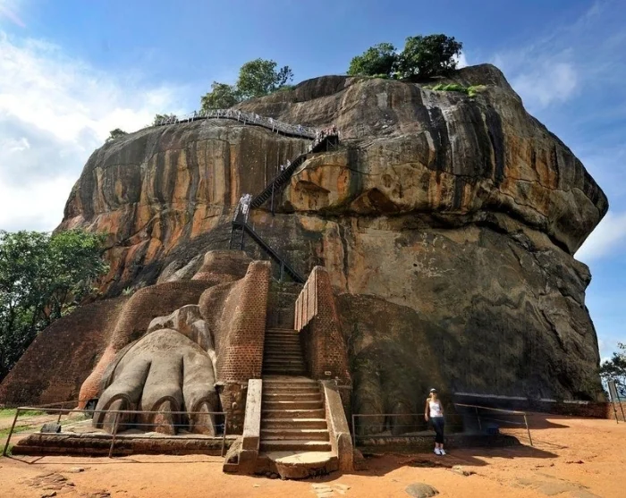 Fremme ved Løveklippen starter du oppstigningen, hvor 1 202 trappetrinn tar deg til toppen på om lag en time. Vi anbefaler å ta det rolig og holde pauser underveis, slik at du kan nyte den imponerende arkitekturen på klippen. Langs veien passerer du fargerike freskomalerier og restene av en blankpolert klippevegg, hvor kong Kashyapa i sin tid kunne speile seg. Ved inngangen til hans tidligere palass ser du to enorme løveføtter – alt som gjenstår av det som en gang forestilte en gigantisk løve, og som har gitt stedet navnet Løveklippen.