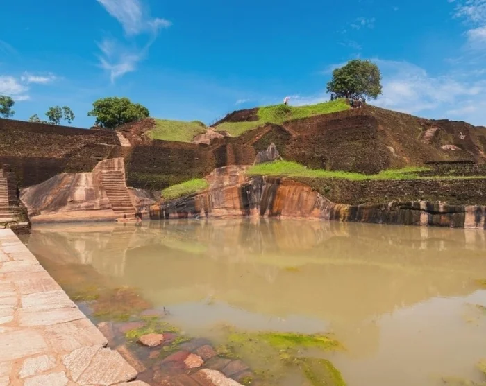 På den flate toppen av klippen venter det en opplevelse du sent vil glemme. Herfra kan du la deg fascinere av den unike utsikten over ruinene av det gamle kongepalasset med vollgraver, vannanlegg og frodige hager. I horisonten brer et grønt teppe av jungel, fjell og landsbyer seg ut, og i det fjerne kan du ane Pidurangala-klippen.