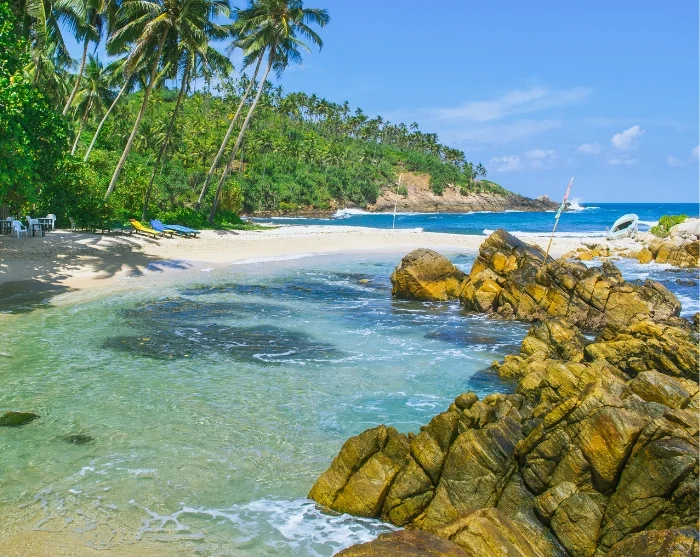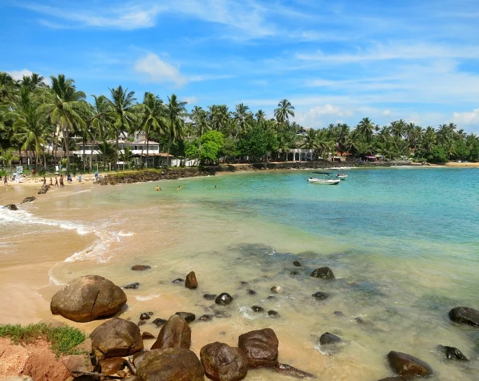 Mirissa er ganske rolig og består av tre små bukter der svaiende kokospalmer strekker seg inn over de vakre, nesten paradisaktige strendene. Selv om dette er en av Sri Lankas mest populære steder for strandliv, finner du fortsatt en deilig, avslappet atmosfære hvor det er lett å finne roen.