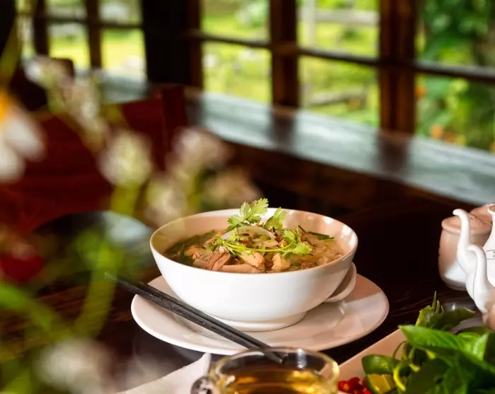 Matopplevelsen følger samme enkle og bærekraftige prinsipp. Menyen er ikke overdådig, men bygd opp rundt et nøye utvalg av autentiske vietnamesiske retter, og store buffeter unngås for å redusere matsvinn.