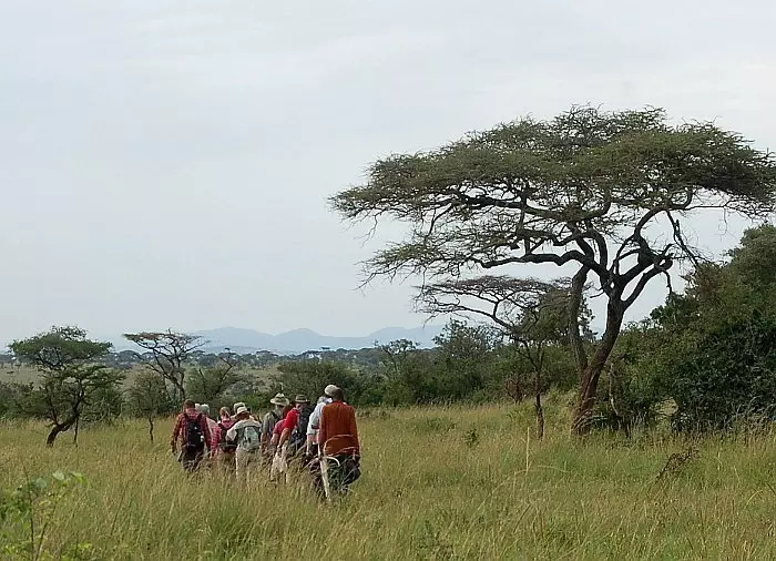 En walking safari er en vandretur i bushen rundt Ikoma Wild Camp. Turen varer i ca. 60 min. og foregår mens det er lyst. Du vandrer i den ville naturen og blir derfor ledsaget av både en guide og en bevæpnet sikkerhetsvakt. Underveis kan du møte gaseller, antiloper, sebraer, gnuer, giraffer, elefanter, hyener, bøfler – og kanskje til og med løver. Det er en fantastisk opplevelse å gå rundt i den ville naturen, der du ikke er herre over noe som helst!