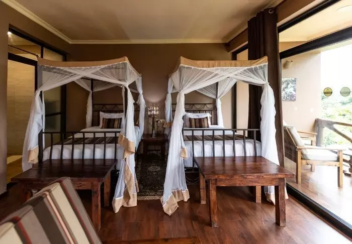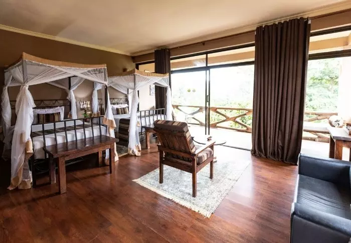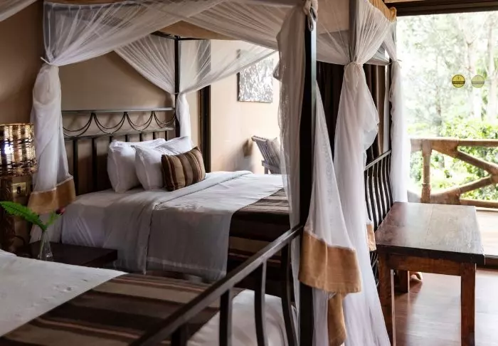 Rommene på Coffee Lodge ligger litt for seg selv, ca. 100 meter fra selve hotellet. Lodgen består av 4 dobbelthus med to rom i hvert hus. De er bygget litt adskilt fra hverandre og oppover en bakke, så det er luft og plass rundt dem. Alle rom er innredet med stort bad og toalett og har en egen veranda der det er god plass til å slappe av med en bok, Til rommene hører et eget spisetelt, der du kan spise frokost og/eller middag mens du nyter utsikten mot dalen med kaffeplantasjer.