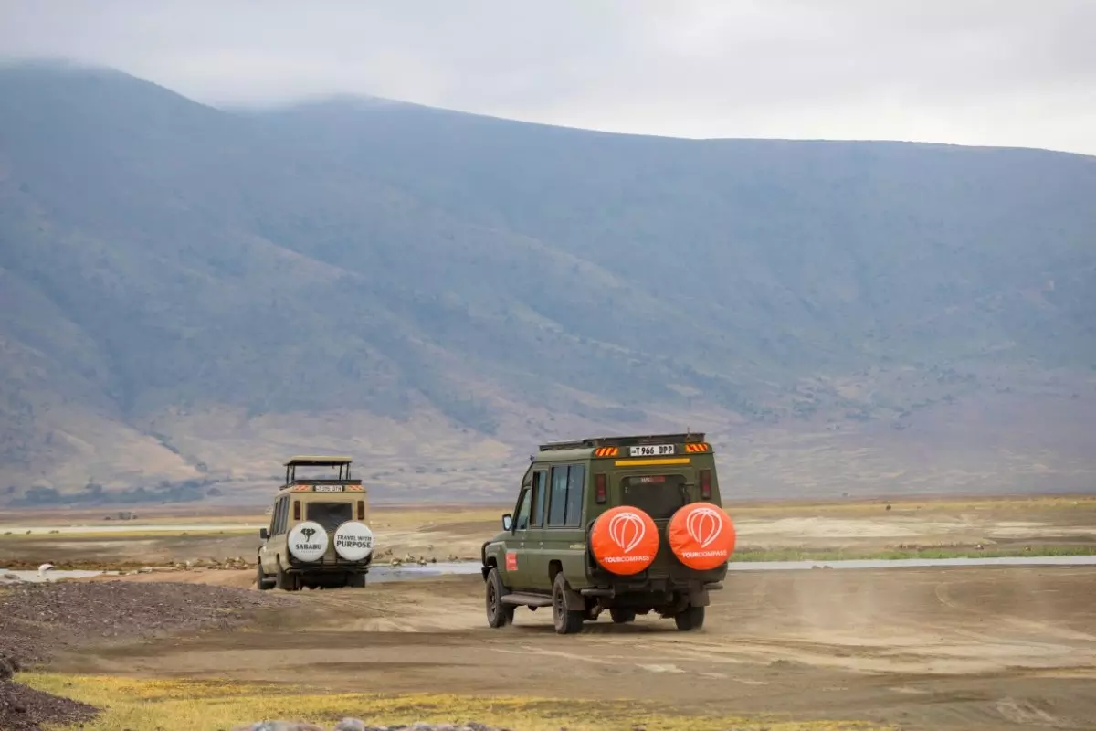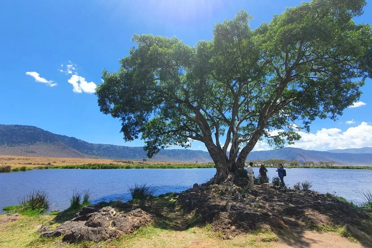Vi har spart det beste til slutt. Med litt flaks får dere nemlig møte The Big Five i dag. Det skjer på safari i Ngorongoro-krateret, verdens største inaktive vulkan. Vulkanen eksploderte og falt sammen for 2–3 millioner år siden. Den etterlot seg et gigantisk hull som i dag er hjemsted for 30 000 dyr og 350 forskjellige fuglearter som alle har tilgang til vann året rundt. Bare turen ned i selve krateret er et høydepunkt. Med åpent tak på safaribilen kjører dere stadig lengre ned. Dere føler hvordan temperaturen endrer seg og kan lukte de mange forskjellige trærne og blomstene til dere til slutt kommer frem til mikrokosmoset på bunnen.
