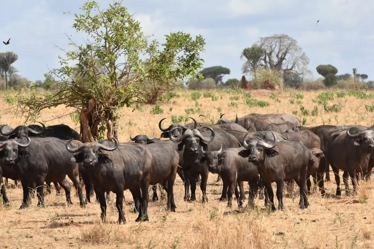 Safari i Tarangire nasjonalpark betyr store elefantflokker, massevis av bøfler, sebraer i hopetall, gnuer, gaseller og sjiraffer. Hvis dere virkelig har flaks, krysser en leopard veien foran dere!