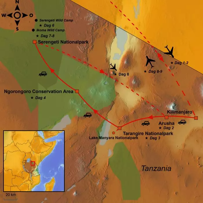 Du får oppleve Nord-Tanzanias mest berømte nasjonalparker og kjøre langs ukjente landeveier mellom noen av parkene, der du kan få se lokale landsbyer som nesten ingen turister kjenner til.