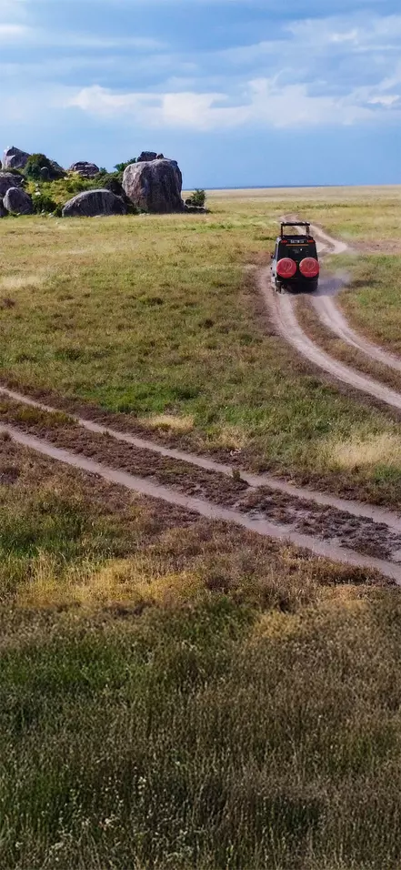 Etter noen fantastiske timer i krateret kjører dere opp igjen, og ferden går videre til Serengeti nasjonalpark. Dette er sannsynligvis blant de vakreste kjøreturene i verden. Fra det frodige området på og rundt vulkanen kjører dere nå mot de endeløse slettene i Serengeti, hvor bare små kratt – og et uendelig antall dyr – viser seg mot horisonten.