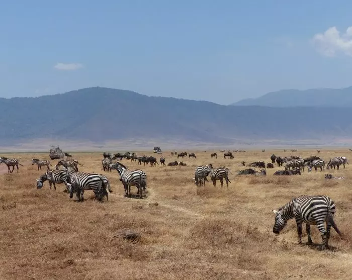 Fra Serengeti går turen videre til Ngorongoro-krateret. Turen foregår i bil, så det er nesten som å være ute på én lang game drive hele dagen.