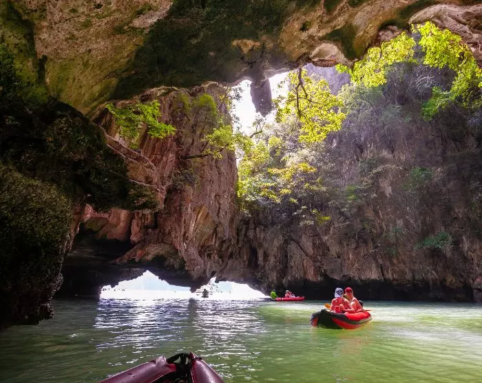 Du blir hentet på hotellet ditt og kjørt til kaien, og der går du ombord i en speedbåt som tar deg med til noen av buktens største severdigheter. Du stopper ved øyene Panak og Koh Hong, og der kan du padle i kano i de flotte omgivelsene. Naturligvis får du også se Koh Tapu, bedre kjent som James Bond Island fra filmen “Mannen med den gyldne pistol”.