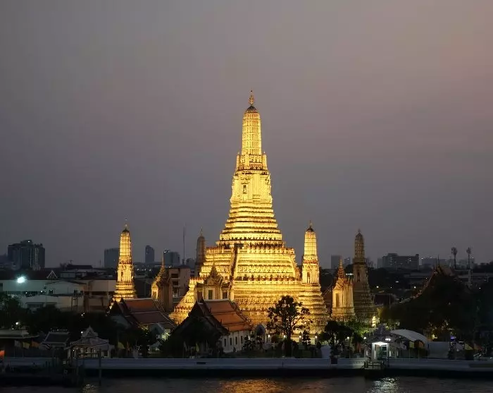 Kvelden avsluttes på en avslappet rooftop-bar som ligger ved Chao Phraya-elven med utsikt til det opplyste tempelet Wat Arun. Flottere utsikt finner du neppe!